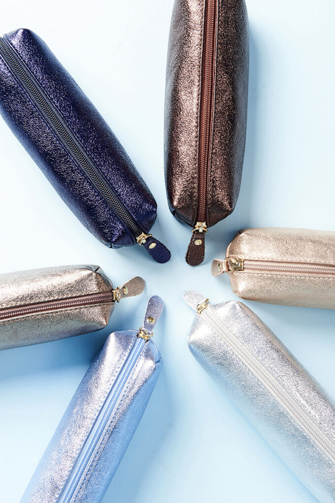 Il pratico astuccio in pelle coloratissima e metallizzata è la soluzione perfetta per portare con te il kit di sopravvivenza di noi donne, i trucchi. Comodo anche come astuccio da cancelleria per la scuola o il lavoro.