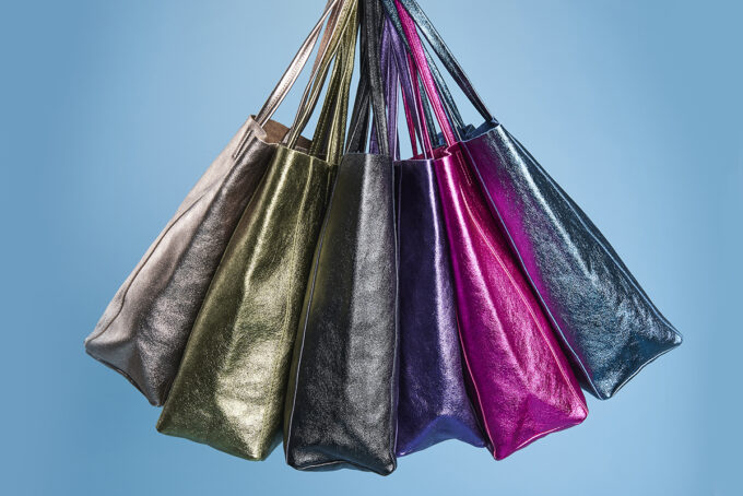 Pelle bronzo, Pelle ciclamino, Pelle fucsia, Pelle nera, Pelle nero glitter, Pelle oro, Pelle petrolio, Pelle viola, Platino