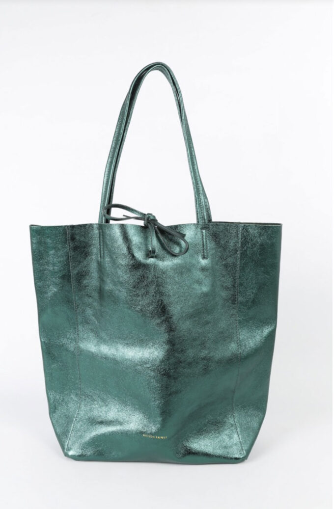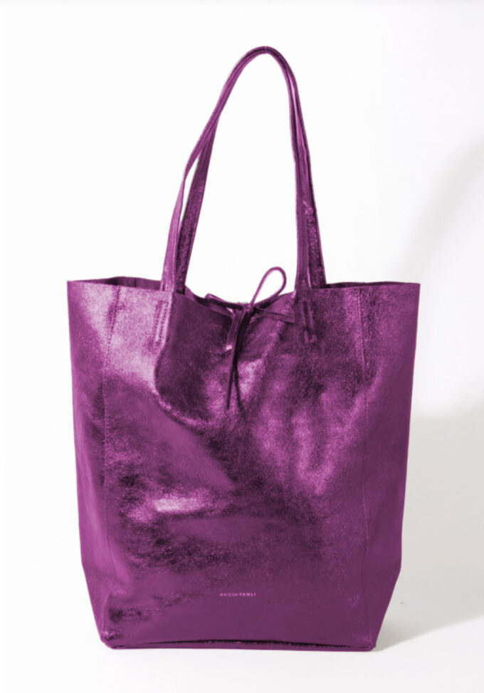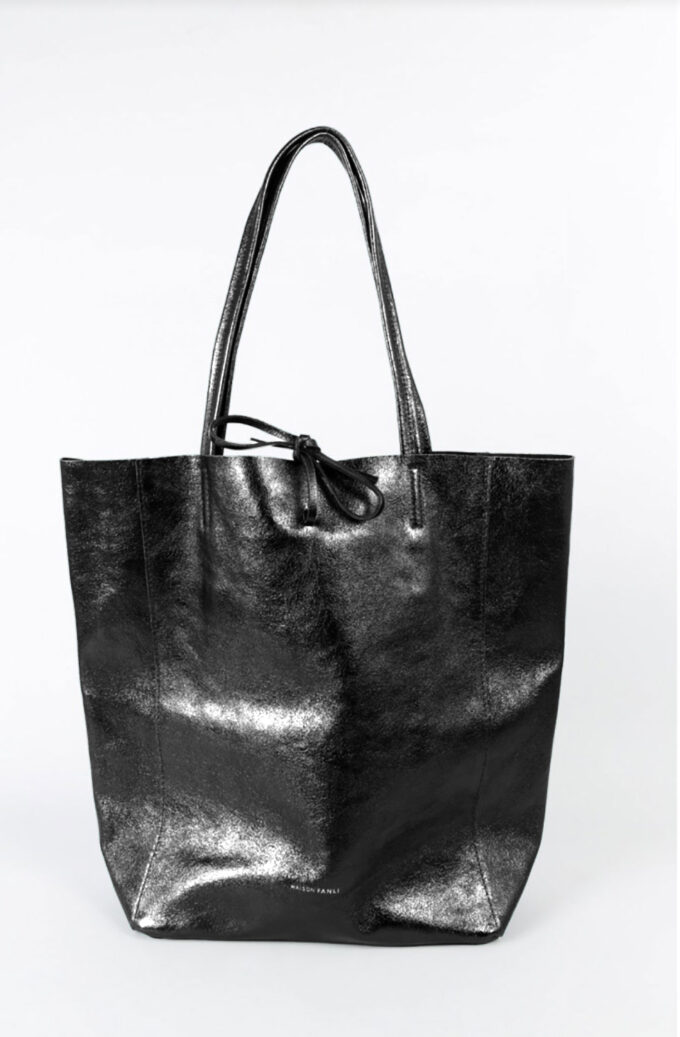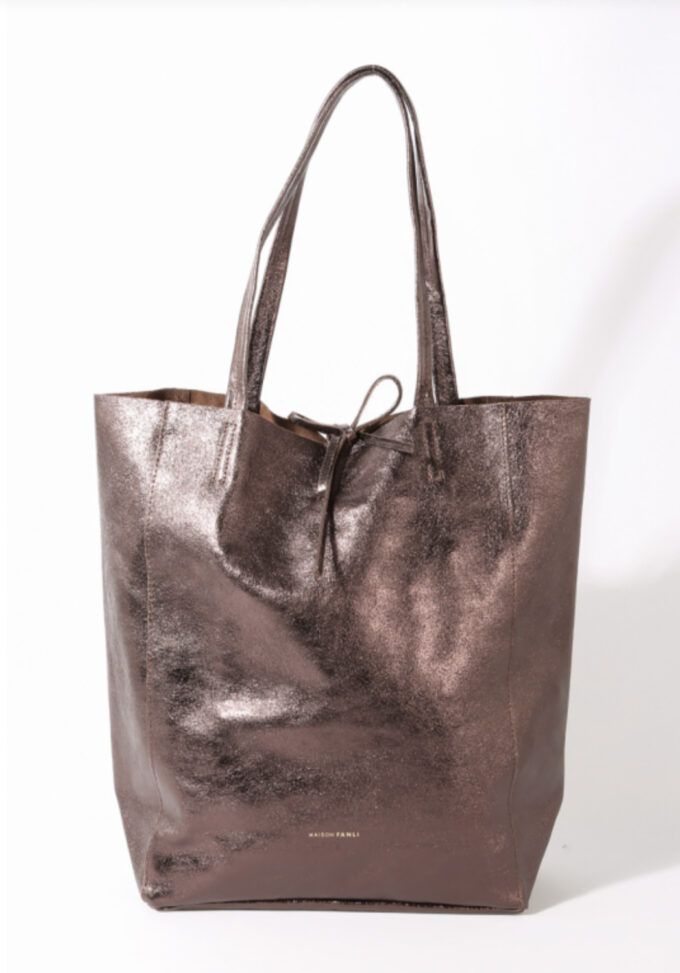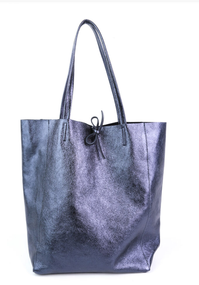 Questa comoda borsa è confezionata in vera pelle trattata in modo da ottenere una finitura metallica, senza però perdere la morbidezza del materiale originale. Le dimensioni permettono di trasportare un laptop fino a 15 pollici, si chiude con due comodi lacci sul lato superiore.