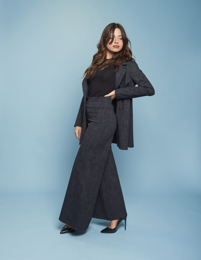 Pantaloni dritti, con fascia alta in vita.