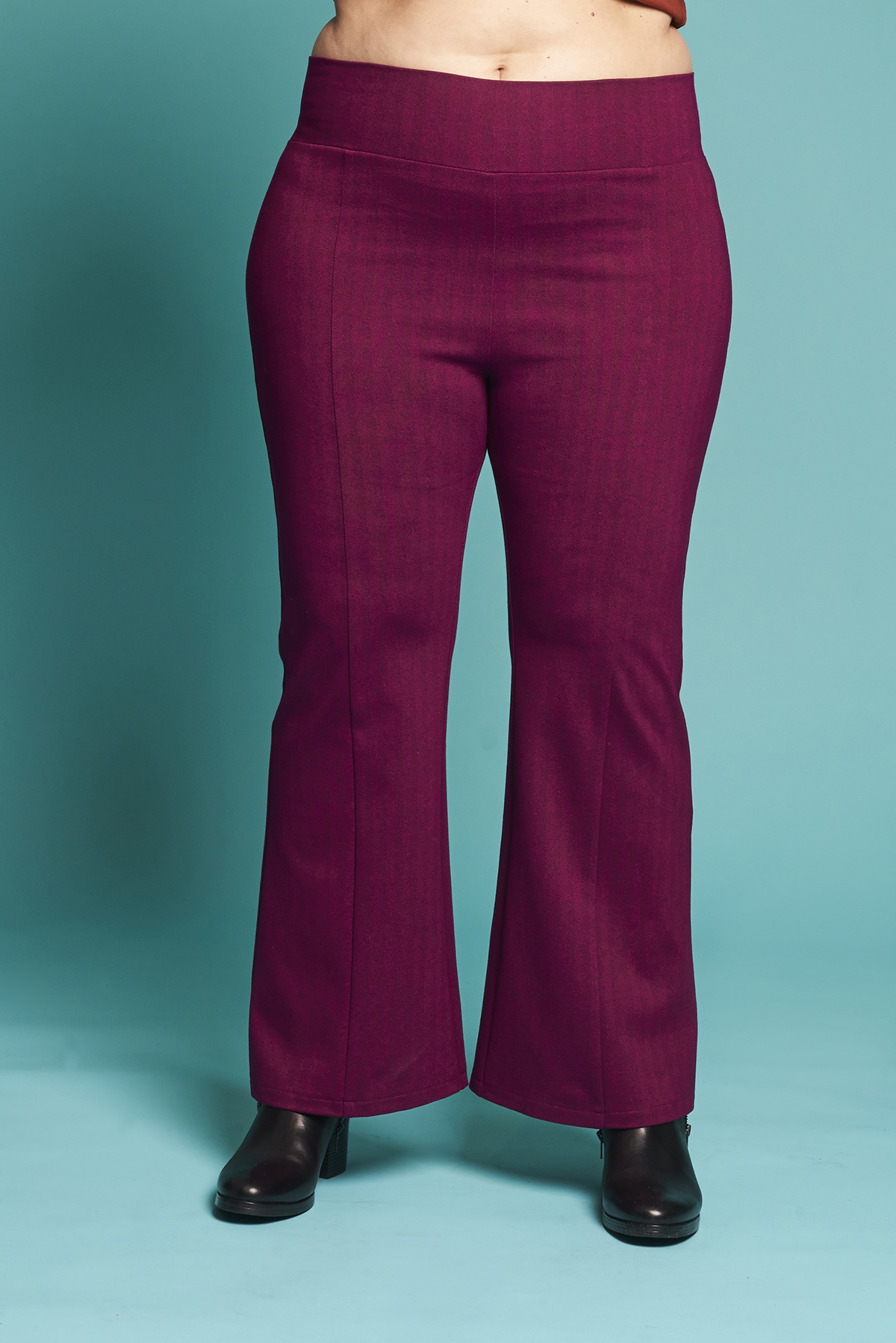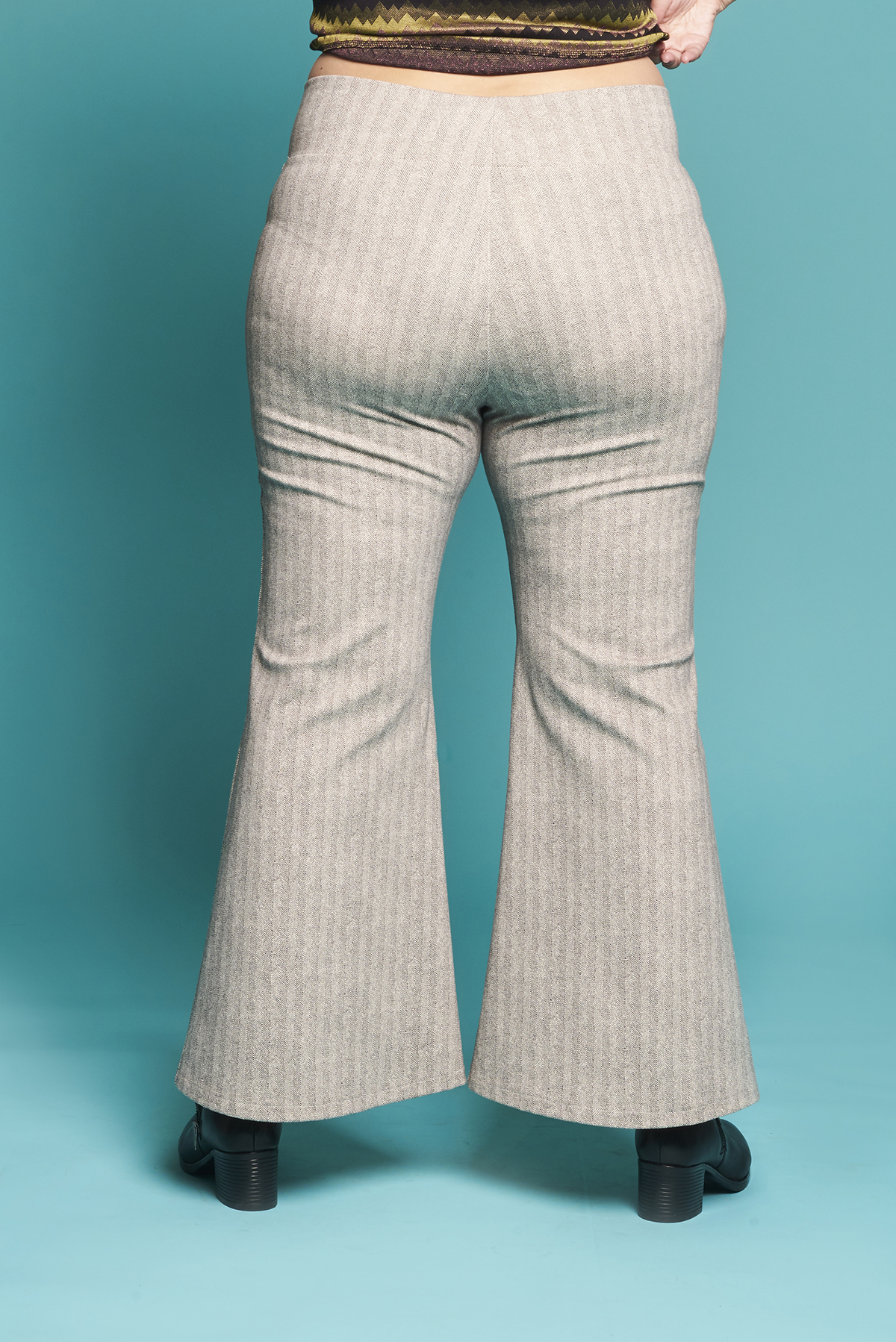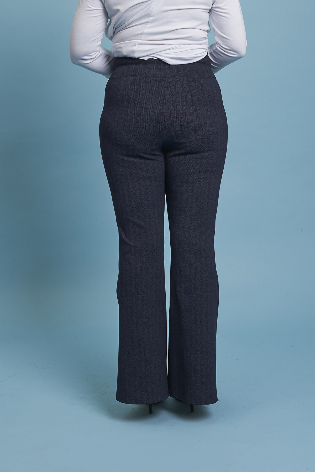 Una variazione del pantalone Comfy palazzo, gamba ampia con fascia alta in vita.