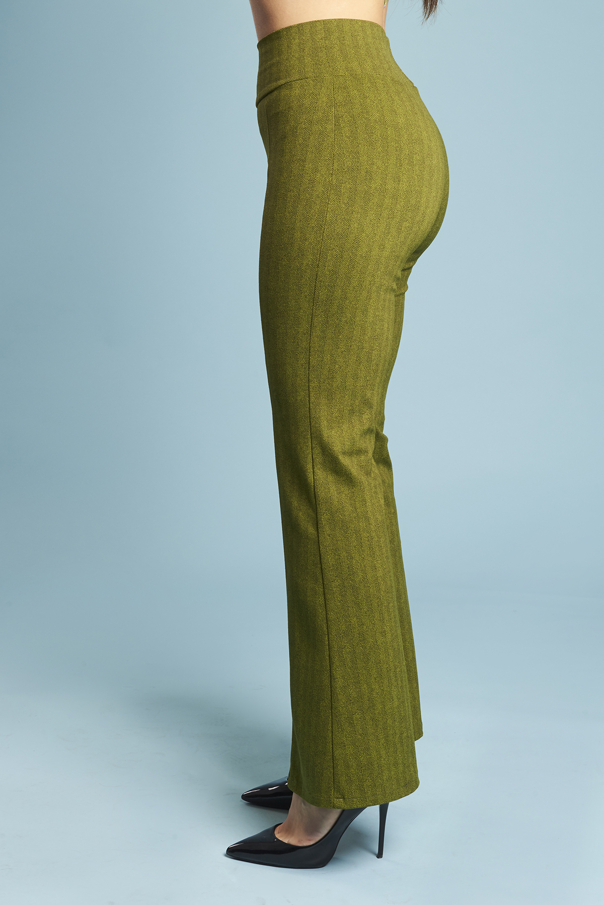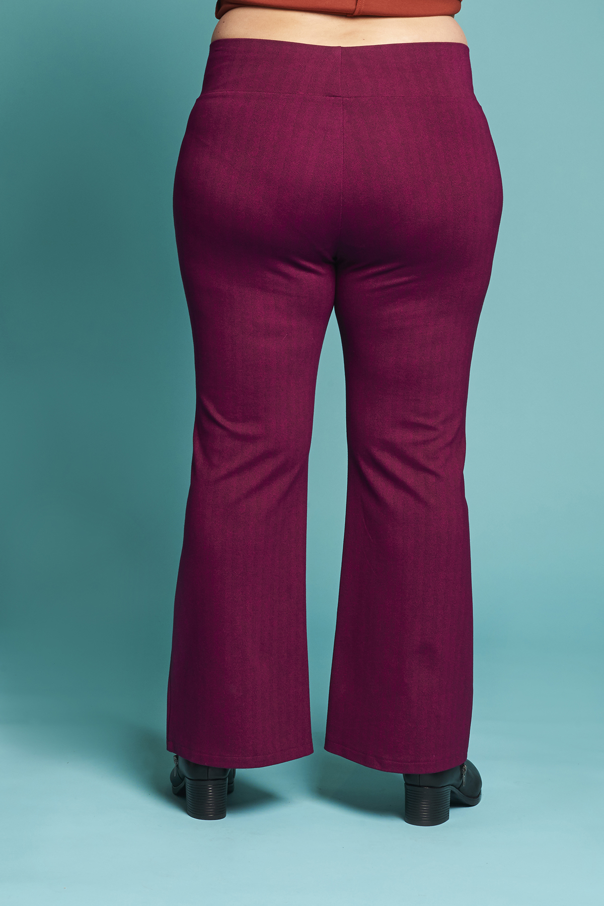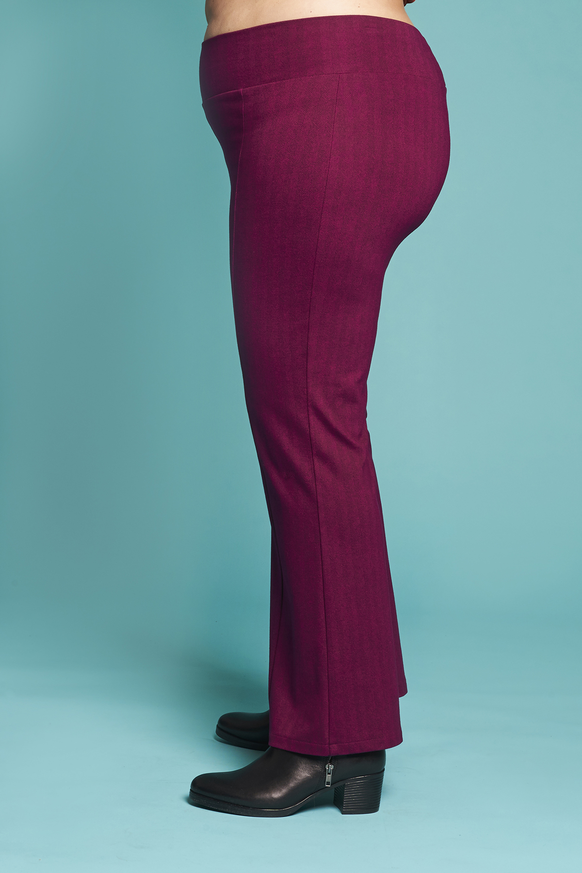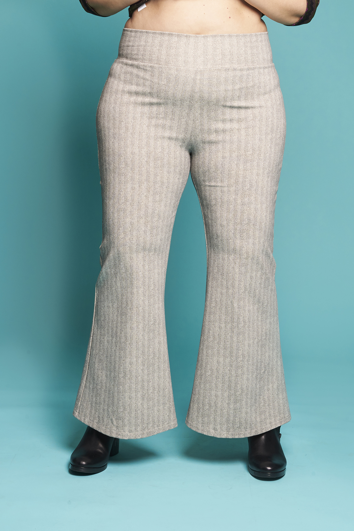 Una variazione del pantalone Comfy palazzo, gamba ampia con fascia alta in vita.