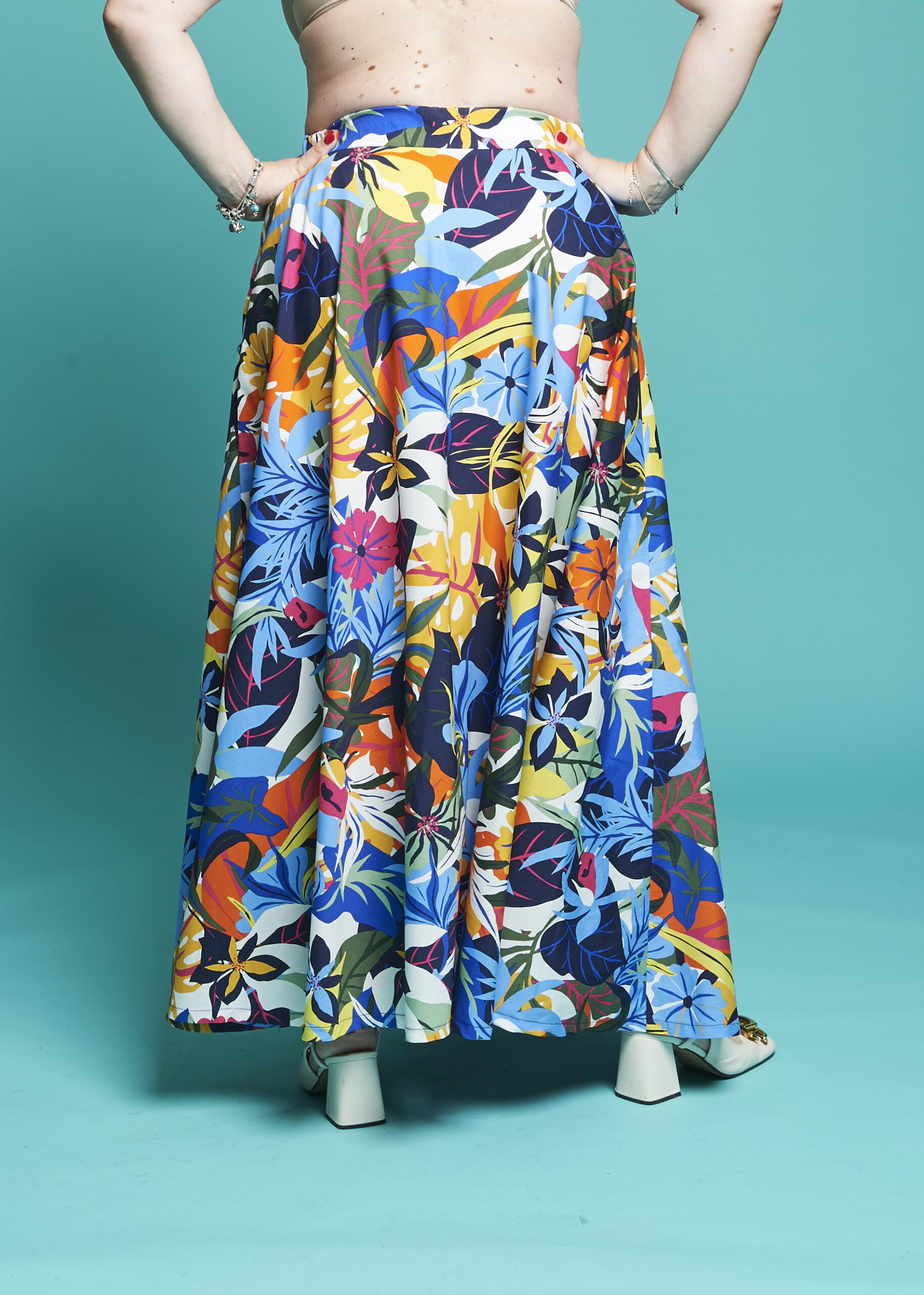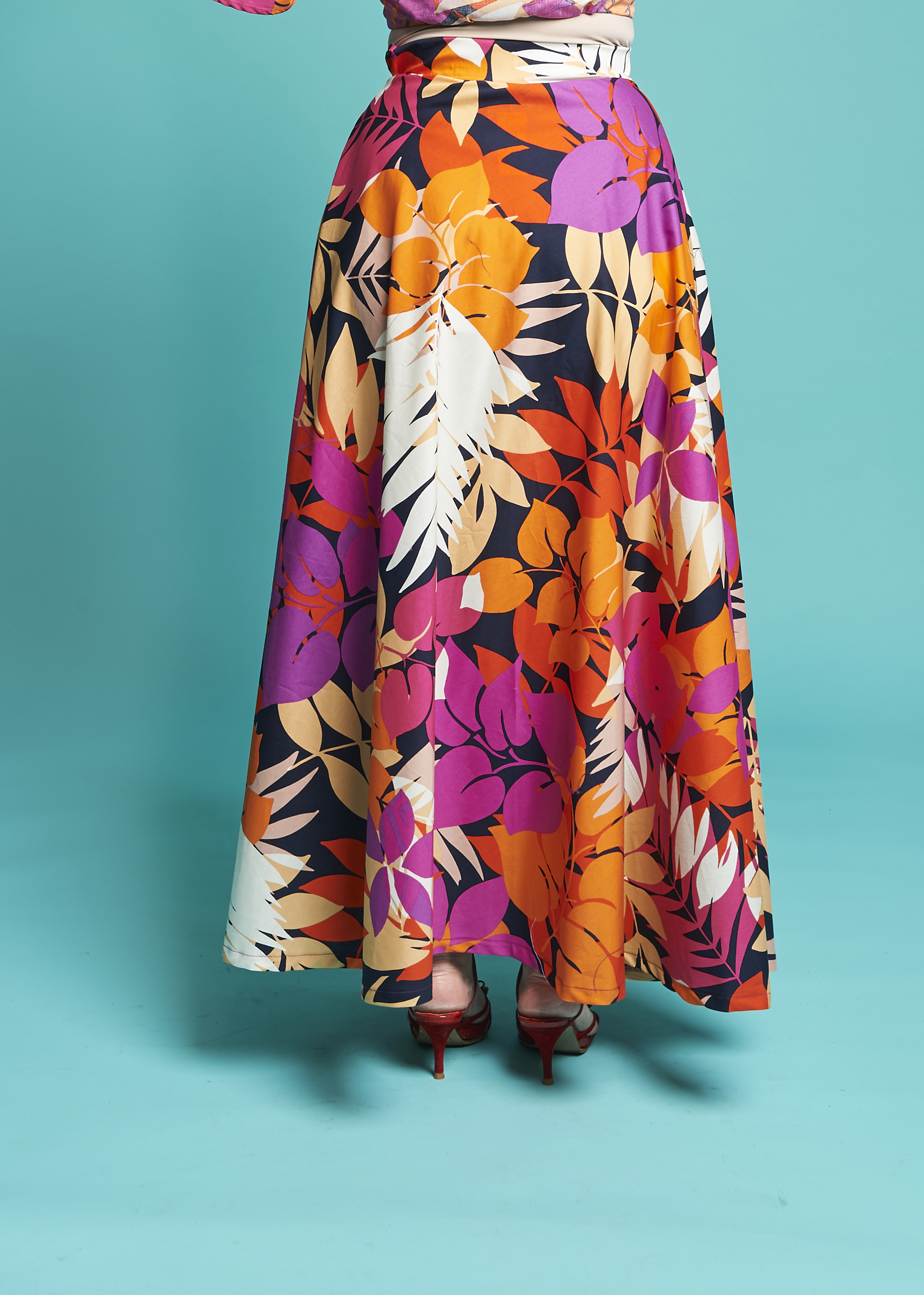 Questa gonna ampia fa risaltare qualsiasi silhouette, ha la caratteristica di evidenziare il punto vita per poi scendere con una linea morbida. La gonna da favola per ogni occasione è servita!