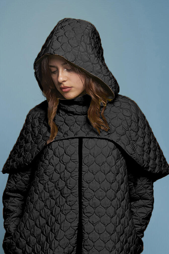 il cappuccio Coco è l’accessorio imperdibile per finire qualsiasi look: bello e funzionale con un cappuccio comodo che finisce a collo alto scende sulle spalle con una mantellina sagomata più lunga sul retro, per creare un gioco di volumi senza appesantire la figura. Una versione moderna della mantellina giusta per coprirvi spalle e cuore.
