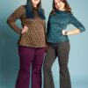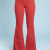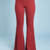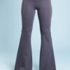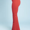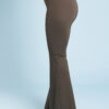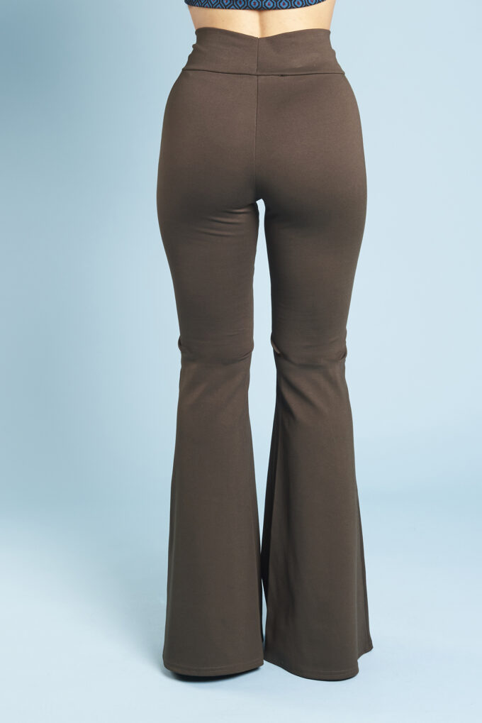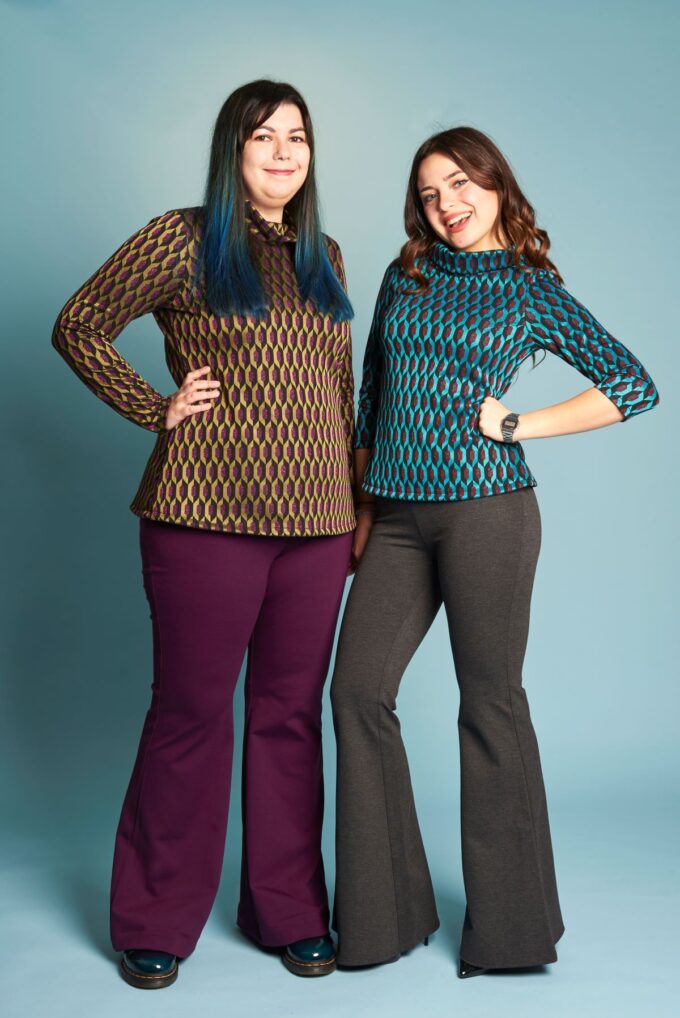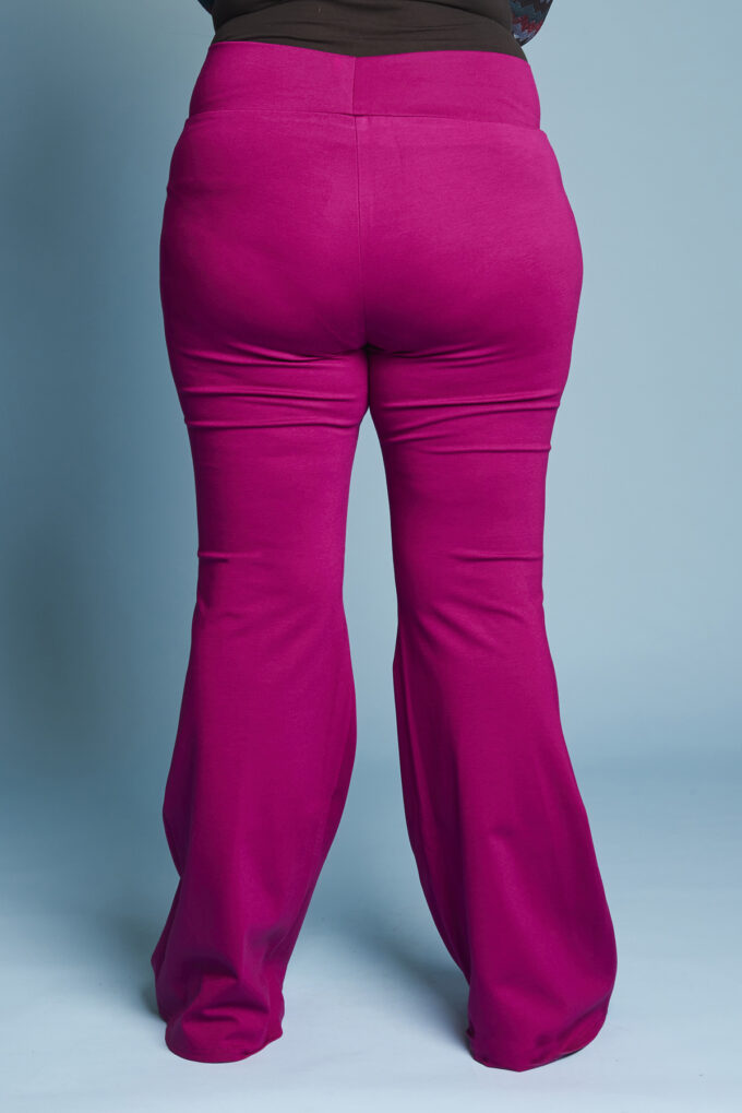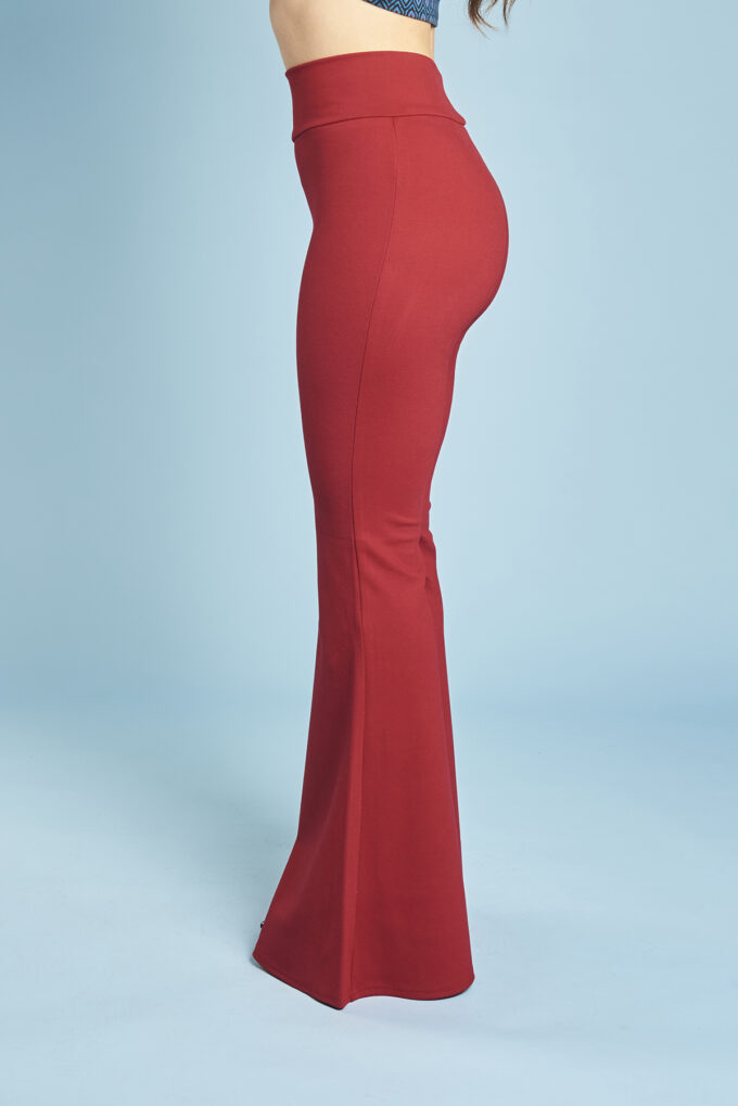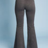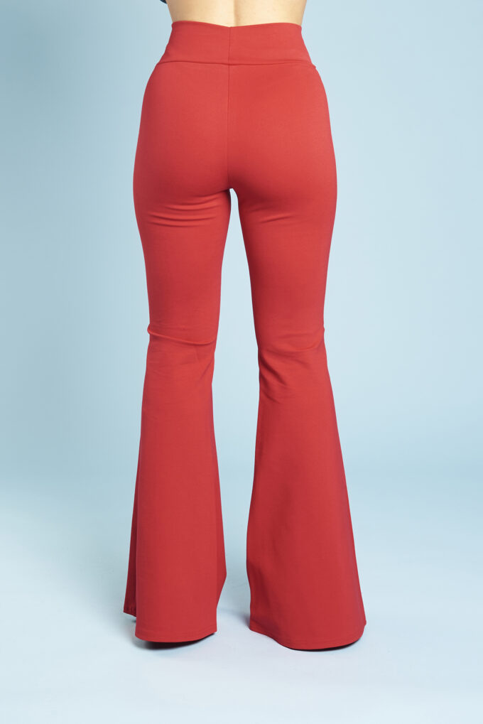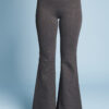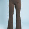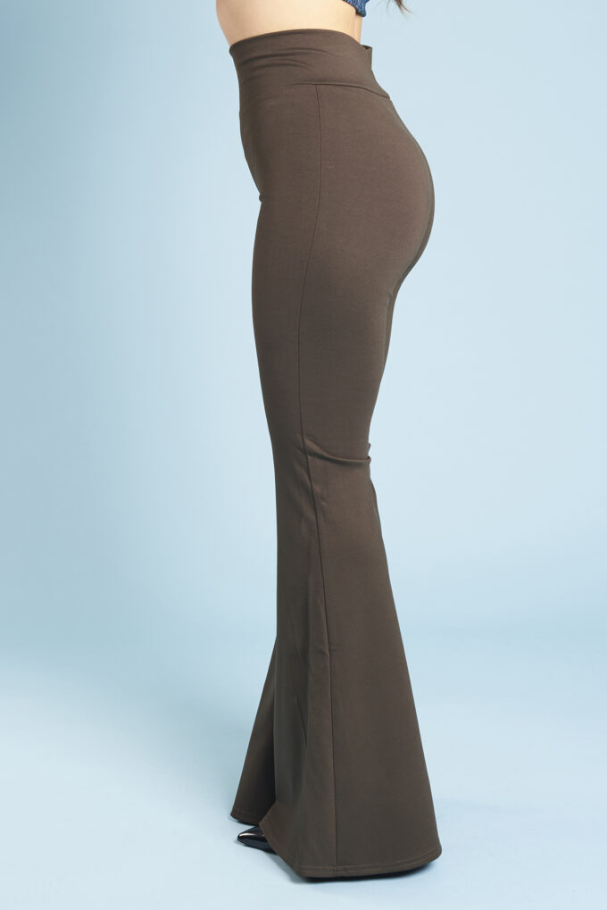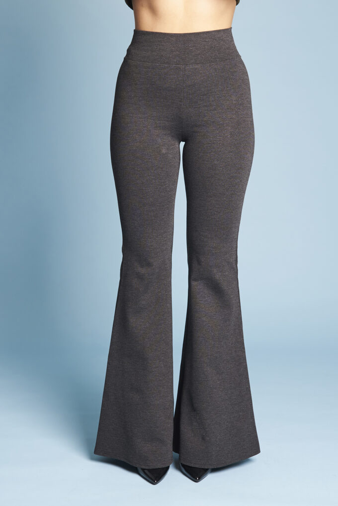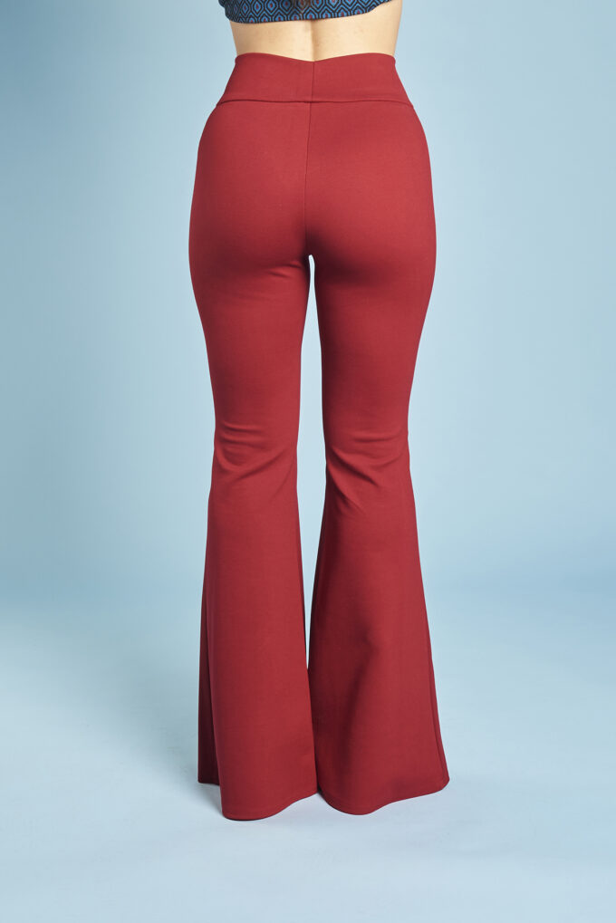 Una variazione del pantalone slim, gamba svasata a zampa di elefante, lunghi e con fascia alta in vita.