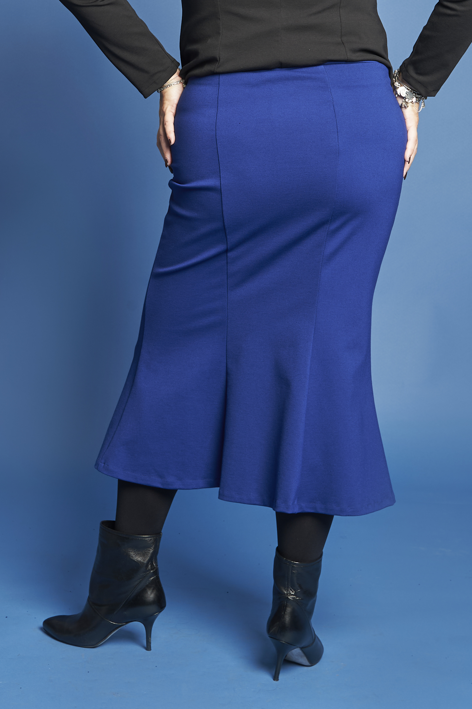 Gonna aderente a sei teli con cintura e inserito elastico. La sua linea a sirena conferisce al capo un profilo sensuale avvolgendo delicatamente le curve del corpo. Sarai comoda e a tuo agio sfoggiando un look elegante e ricercato.