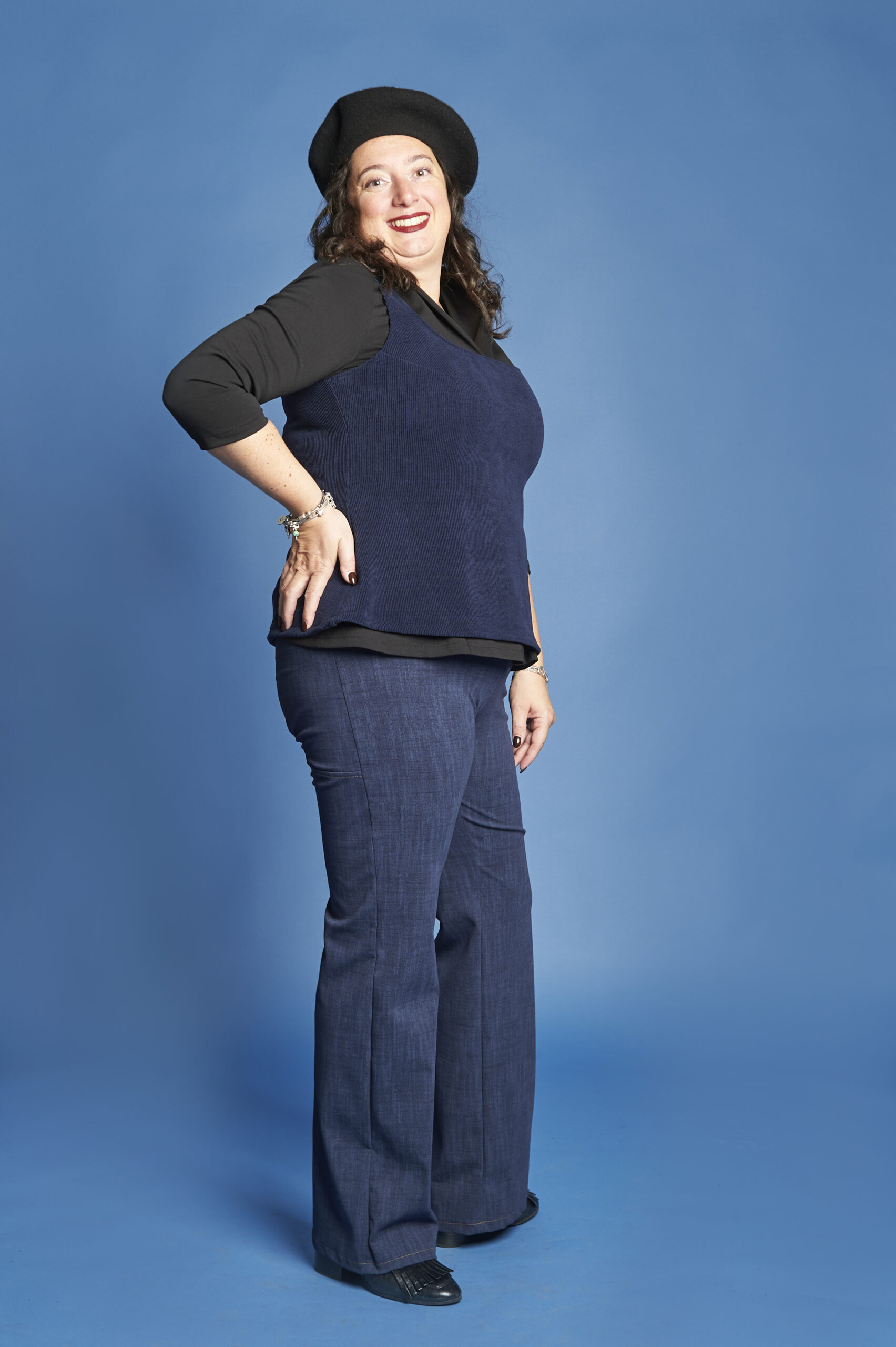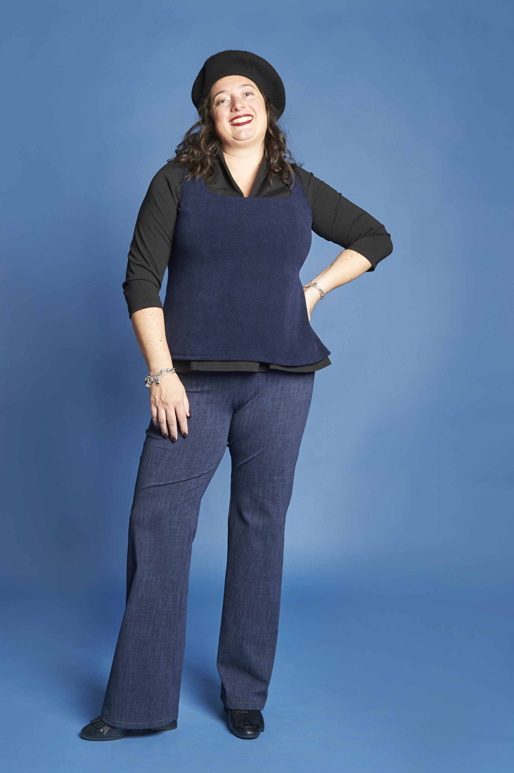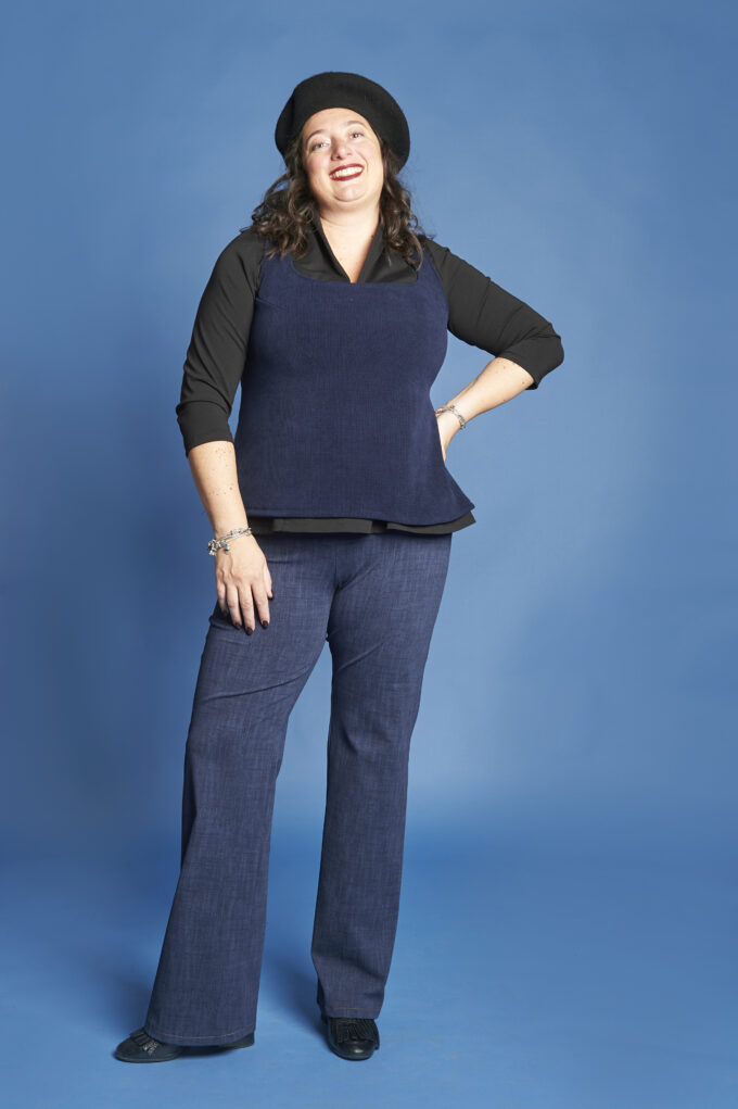Nella versione del tessuto punto Roma tramato che sembra jeans ma mille volte più comodo.